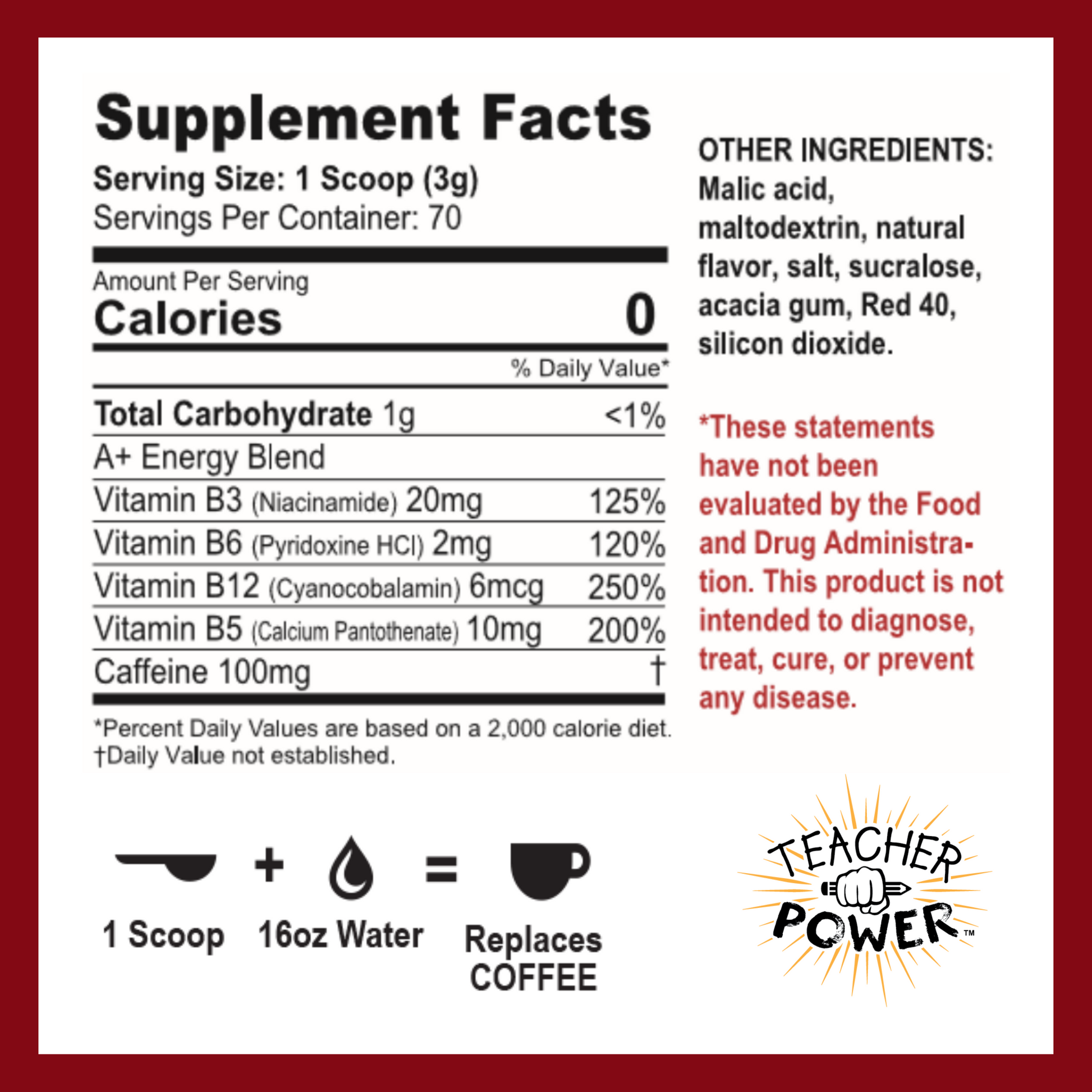 Breathe in when scooping out a serving of Teacher Power Original Black Cherry Energy Drink Mix. Then close your eyes when you take your first sip. You are going to make a difference in a child’s life today. You got this with Teacher Power in your cup!